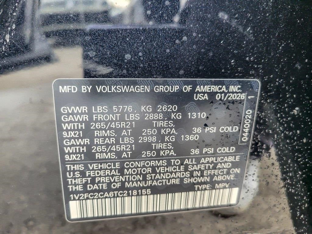 KEY FEATURES INCLUDE: 10 Speakers, 4-Wheel Disc Brakes, 4-Wheel Independent Suspension, ABS brakes, Air Conditioning, Alloy wheels, AM/FM radio: SiriusXM with 360L, Auto High-beam Headlights, Auto-dimming Rear-View mirror, Automatic temperature control, Brake assist, Bumpers: body-color, Compass, Delay-off headlights, Driver door bin, Driver vanity mirror, Dual front impact airbags, Dual front side impact airbags, Dynamic Wheel Center Caps (set of 4), Electronic Stability Control, Emergency communication system: VW Car-Net Safe & Secure 5-year, Exterior Parking Camera Rear, Four wheel independent suspension, Front anti-roll bar, Front Bucket Seats, Front Center Armrest, Front dual zone A/C, Front fog lights, Front reading lights, Front-Door Mounted Volkswagen Logo Puddle Lights (set of 2), Fully automatic headlights, Garage door transmitter: HomeLink, harman/kardon® Speakers, Heads-Up Display, Heated and Actively Ventilated Front Bucket Seats, Heated door mirrors, Heated front seats, Heated rear seats, Heated steering wheel, Heavy Duty Trunk Liner with VW CarGo Blocks, Illuminated entry, Leather steering wheel, Low tire pressure warning, Memory seat, Navigation System, Occupant sensing airbag, Outside temperature display, Overhead airbag, Overhead console, Panic alarm, Passenger door bin, Passenger vanity mirror, Perforated Vienna Leather Seating Surfaces, Power door mirrors, Power driver seat, Power Liftgate, Power moonroof: Panoramic, Power passenger seat, Power steering, Power windows, Radio data system, Radio: MIB3 Discover Pro with Navigation, Rain sensing wipers, Rear anti-roll bar, Rear audio controls, Rear reading lights, Rear seat center armrest, Rear window defroster, Rear window wiper, Remote keyless entry, Rubber Monster Mats Kit (set of 4), Seat Inserts with Diamond-Pattern Stitching, Security system, Speed control, Speed-sensing steering, Split folding rear seat, Spoiler, Sport steering wheel, Steering wheel mounted audio controls, Tachometer, Telescoping steering wheel, Tilt steering wheel, Traction control, Trip computer, Turn signal indicator mirrors, Variably intermittent wipers, Ventilated front seats, VW Care, and Wheels: 21 2-Tone Machined Alloy. Price includes: $2500 - Customer Bonus. Exp. 03/02/2026