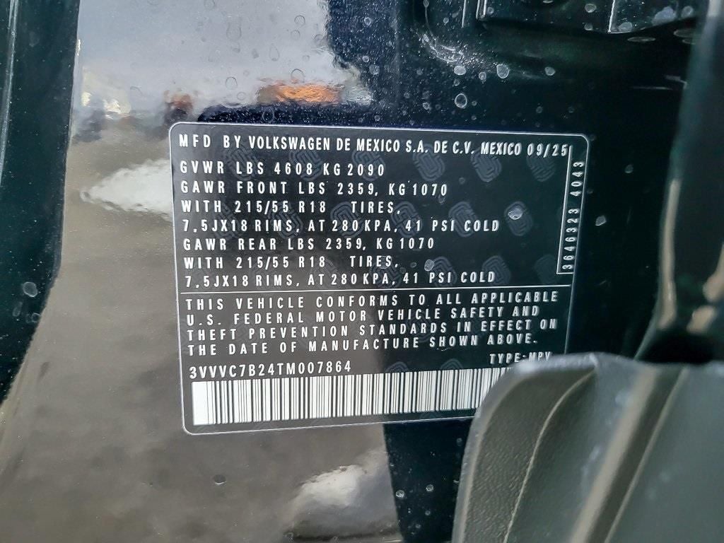 KEY FEATURES INCLUDE: Panoramic Sunroof Package, 4-Wheel Disc Brakes, 6 Speakers, ABS brakes, Active Blind Spot Monitor, Air Conditioning, Alloy wheels, AM/FM radio: SiriusXM with 360L, Auto High-beam Headlights, Auto-Dimming Rear-View Mirror, Automatic temperature control, Brake assist, Bumpers: body-color, Cloudtex and Cloth Seating Surfaces, Compass, Delay-off headlights, Driver door bin, Driver vanity mirror, Dual front impact airbags, Dual front side impact airbags, Electronic Stability Control, Emergency communication system: VW Car-Net Safe & Secure 5-year, Exterior Parking Camera Rear, Four wheel independent suspension, Front anti-roll bar, Front Bucket Seats, Front Center Armrest, Front dual zone A/C, Front reading lights, Front Strut Rear Multi-Link Suspension, Fully automatic headlights, Heated door mirrors, Heated Front Bucket Seats, Heated front seats, Heated steering wheel, Illuminated entry, Leather Shift Knob, Low tire pressure warning, Occupant sensing airbag, Outside temperature display, Overhead airbag, Overhead console, Panic alarm, Passenger door bin, Passenger vanity mirror, Power door mirrors, Power driver seat, Power steering, Power windows, Radio data system, Radio: MIB3 Composition Media AM/FM/HD, Rain sensing wipers, Rear anti-roll bar, Rear seat center armrest, Rear window defroster, Rear window wiper, Remote keyless entry, Rubber Mats Kit, Security system, Speed control, Speed-sensing steering, Split folding rear seat, Spoiler, Steering wheel mounted audio controls, Tachometer, Telescoping steering wheel, Tilt steering wheel, Traction control, Trip computer, Variably intermittent wipers, VW Care, and Wheels: 18 2-Tone Machined Alloy. Price includes: $500 - Customer Bonus. Exp. 04/30/2026