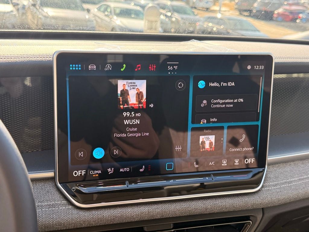 - MIB4 Composition Media Touchscreen w/AM/FM Radio -inc: WMA/MP3/FLAC player w/USB, 12.9" touchscreen multi-function center display w/backlit sliders, voice control, 6 speakers + center speaker (7 speakers total) sound system, capability for in-vehicle 4G LTE enabled Wi-Fi (cellular data plan required; includes limited trial), capability for connected vehicle services (capabilities for services vary; requires enrollment or subscription), Bluetooth® connectivity (for compatible devices), SiriusXM w/360L (w/3-month free trial subscription; 360L services require acceptance of Car-Net terms), App-Connect smartphone integration (w/Apple CarPlay, Android Auto and MirrorLink) via USB, wireless App-Connect smartphone integration (for compatible devices) w/multi-phone pairing capability, 45W fast charging (for compatible mobile phones and accessories) via USB in both rows and Qi wireless inductive charger, cooled, up to 15W (for compatible mobile phones and accessories) All connected vehicle services are subject to terms and limitations. Some services require a paid subscription. See dealer or vw.com/connected for important details.